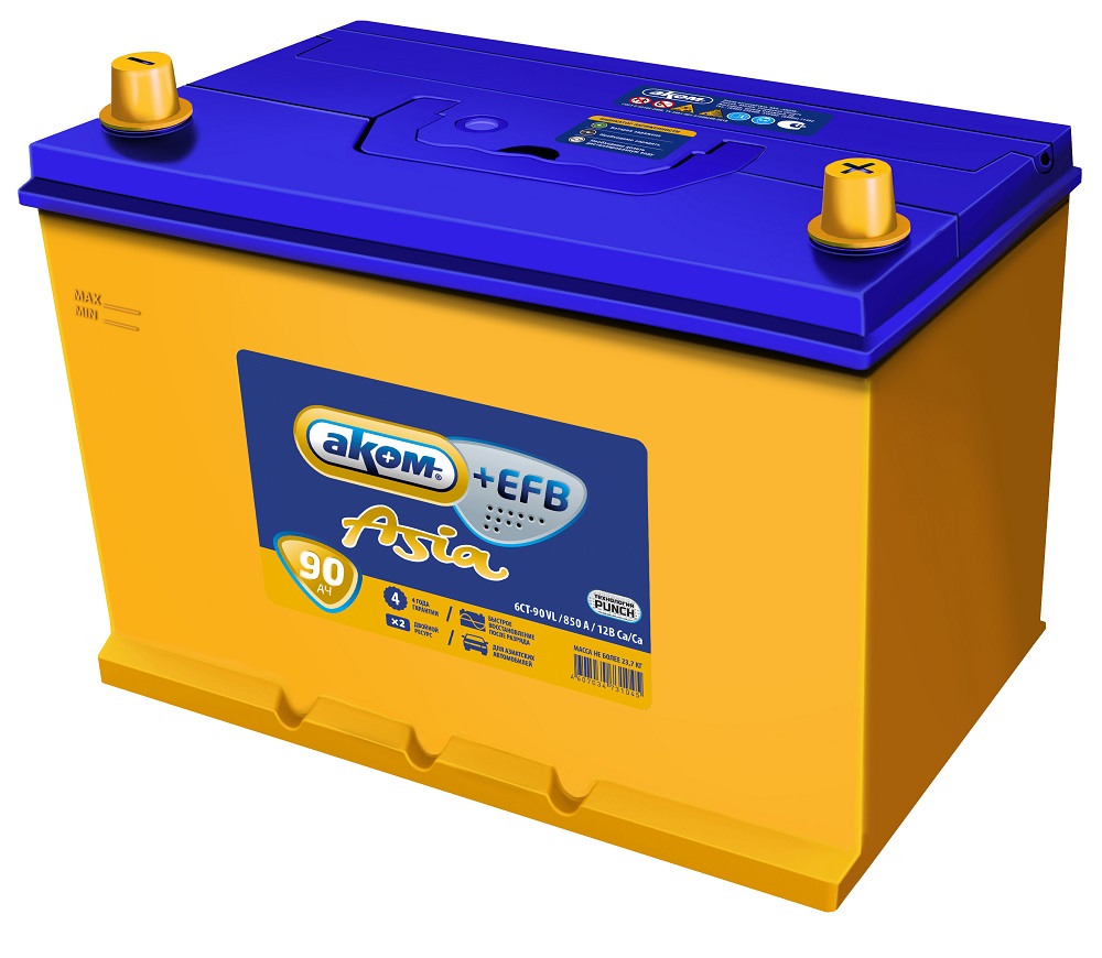 Аккумулятор АКОМ Asia+EFB 90 Ач 850 А +/- СНГ