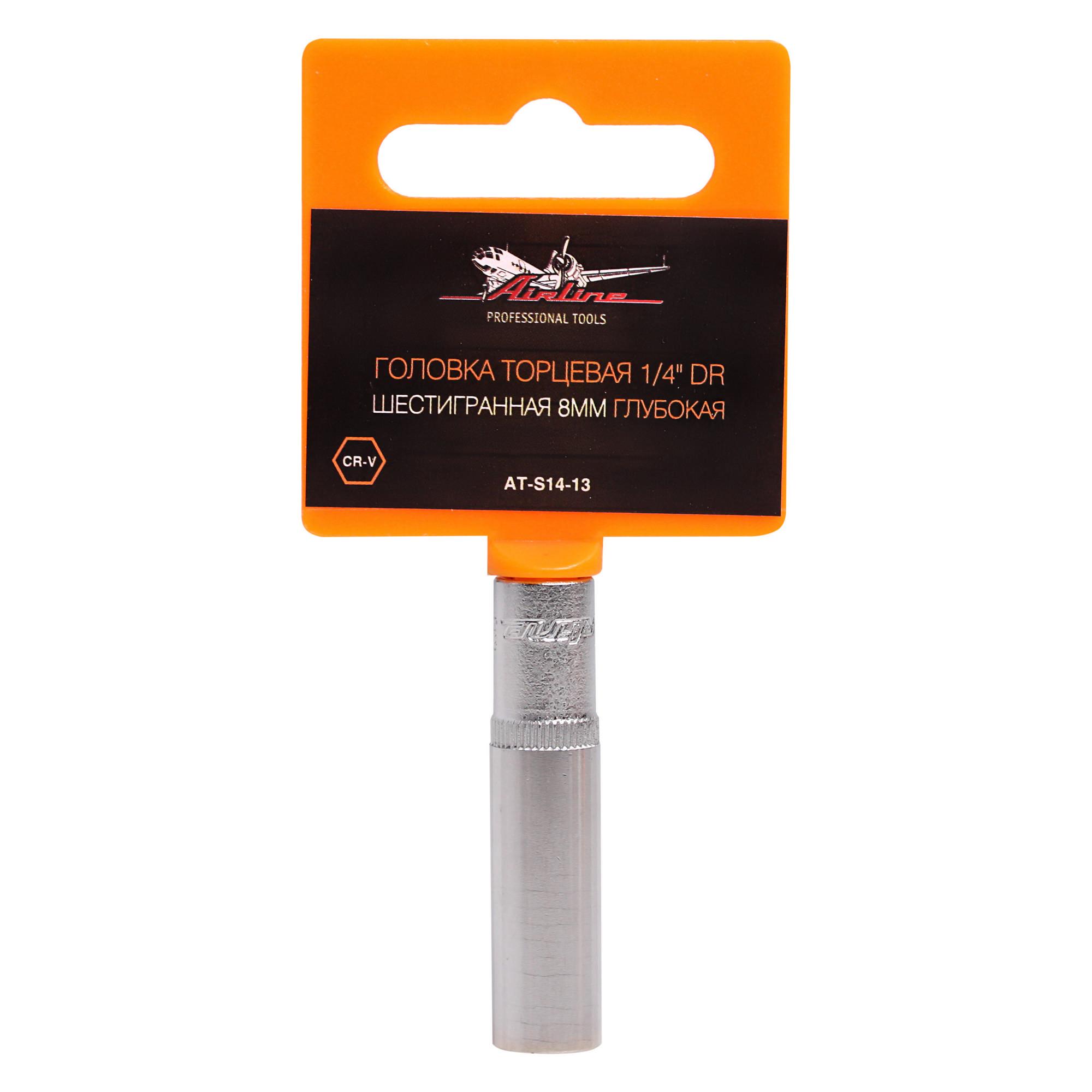 Головка торцевая 1/4" DR шестигранная 8мм глубокая (AT-S14-13)