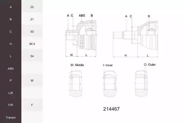 214467 ACEMARK Вал привода колеса в сборе с ШРУСами
