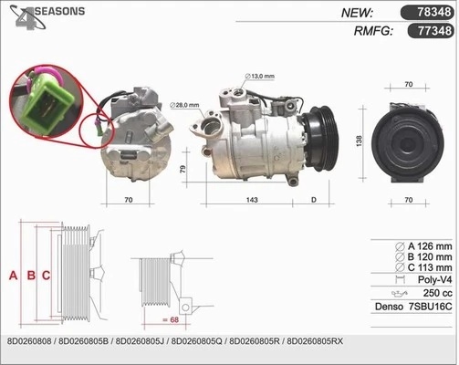 | VAG | 8D0260805B, 8D0260808, 8D0260805J, 8D0260805Q, 8D0260805RX, 8D0260805R, 8D0260805P, 8DO260805J |