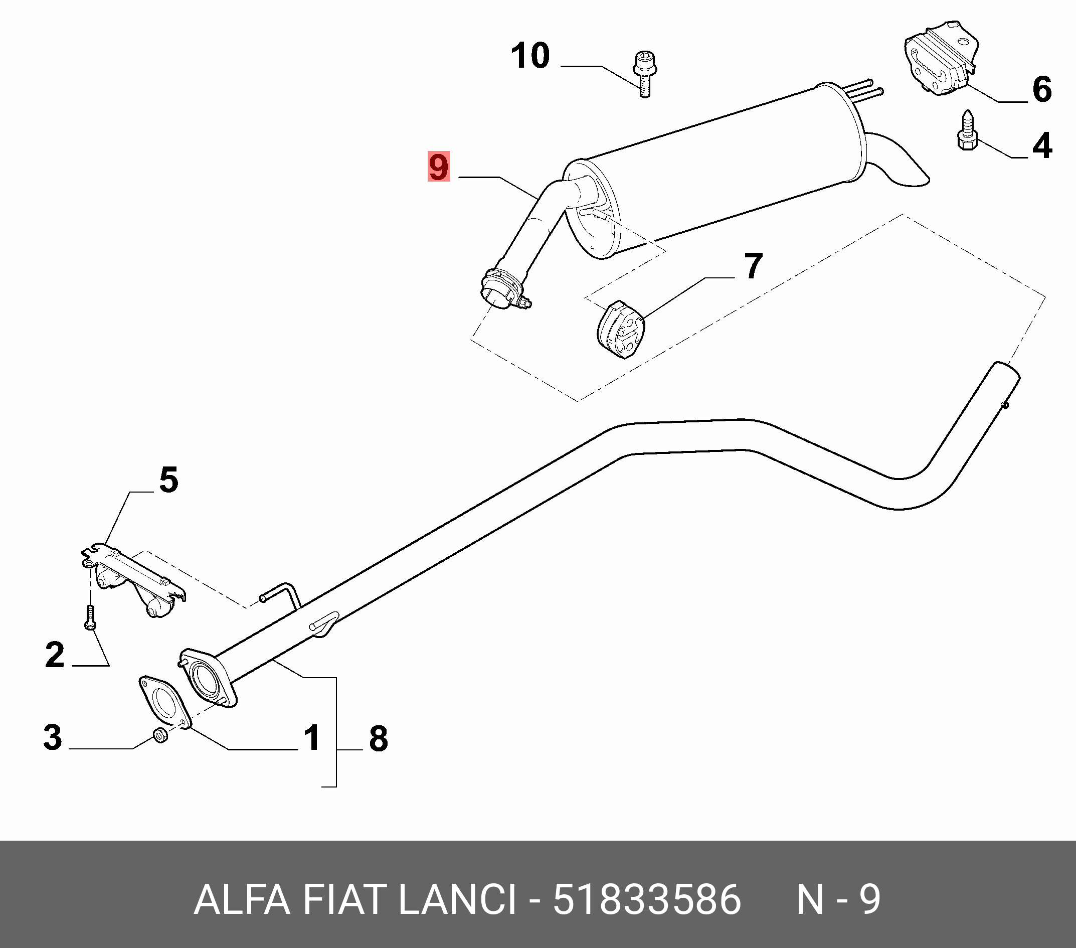 51833586 ALFA FIAT LANCIA Глушитель - задняя часть системы ОГ
