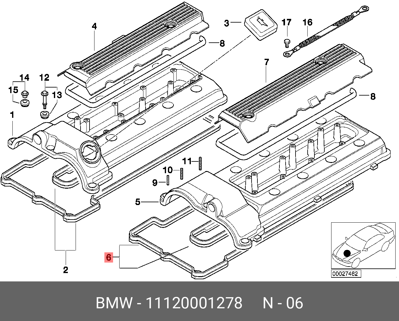 11 12 0 001 278 BMW Прокладка крышки ГБЦ