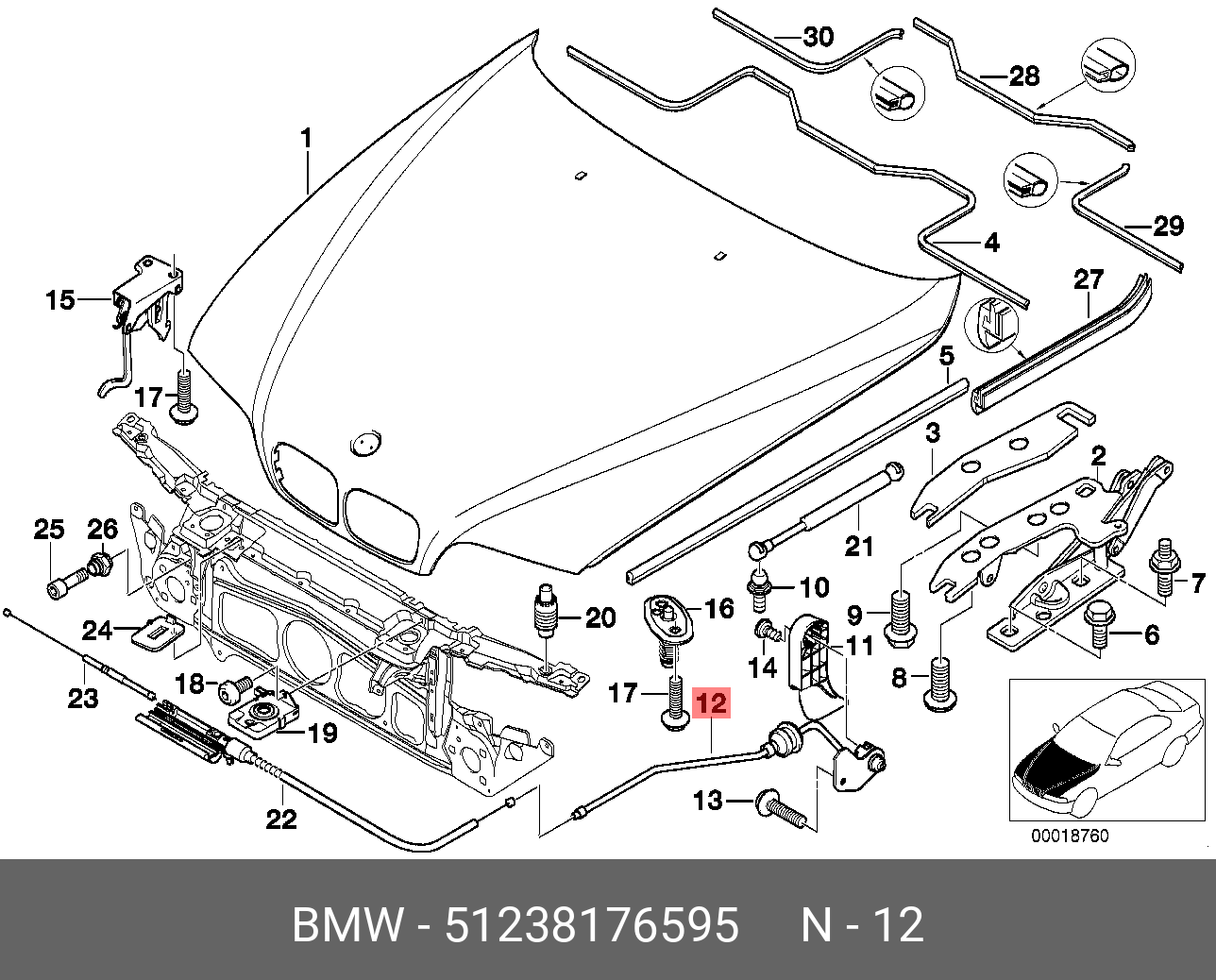 51 23 8 176 595 BMW Трос капота