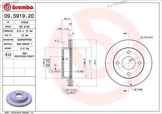 09.5919.20 BREMBO Диск тормозной