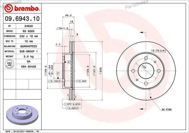 09.6943.10 BREMBO Диск тормозной