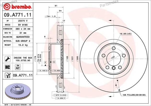 09.A771.11 BREMBO Диск тормозной передн. с УФ покрытием LAND ROVER RANGE ROVER III (L322) 03/02-08/12