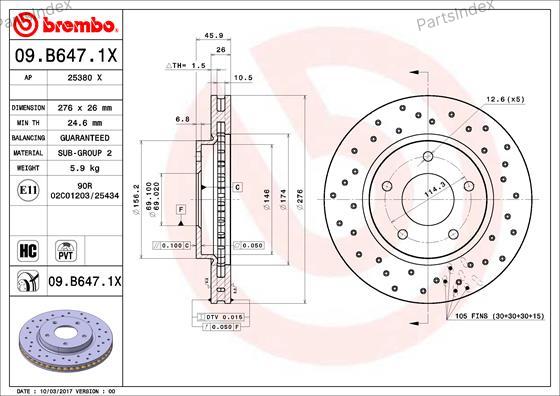 09B6471X BREMBO Диск тормозной передн. серии Brembo Xtra MITSUBISHI LANCER VIII (CY_A CZ_A) 03/07-> / MITSUBISHI LA