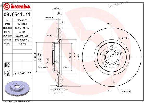 09.C541.11 BREMBO Диск тормозной передн. с УФ покрытием FORD KUGA II (DM2) 05/12-> / FORD TOURNEO CONNECT / GRAND TOUR