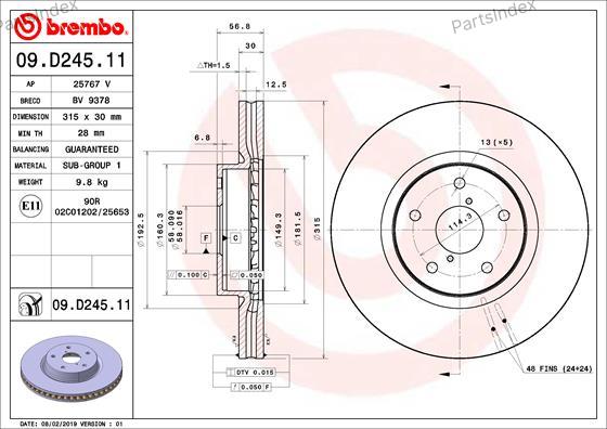 09D24511 BREMBO Диск тормозной передн. с УФ покрытием SUBARU LEGACY VI (BN BS) 01/15-> / SUBARU LEVORG 03/15-> / SU