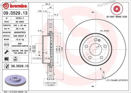 09.D529.13 BREMBO Диск тормозной высокоуглеродистый передн. MERCEDES-BENZ CLS (C257) 12/17-> / MERCEDES-BENZ E-CLASS (