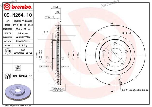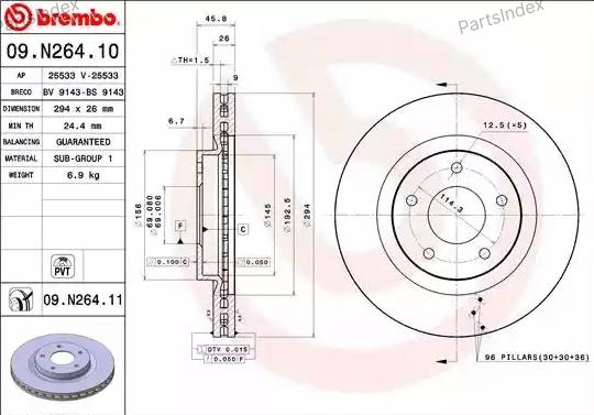 09.N264.11 BREMBO Диск тормозной передн. с УФ покрытием CITROEN C4 AIRCROSS 08/10-> / MITSUBISHI ASX (GA_W_) 01/10-> /