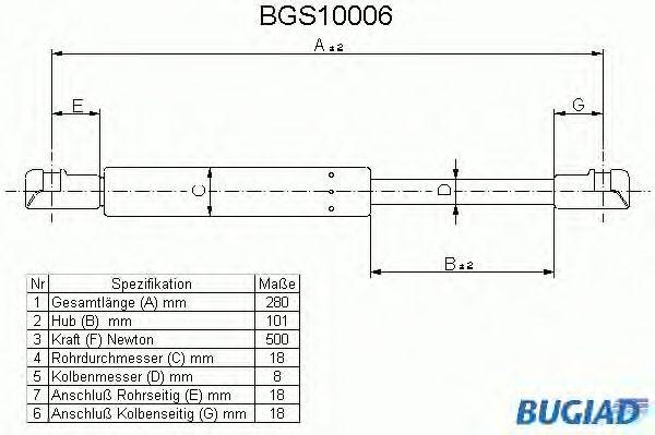 BGS10006 BUGIAD Амортизатор капота