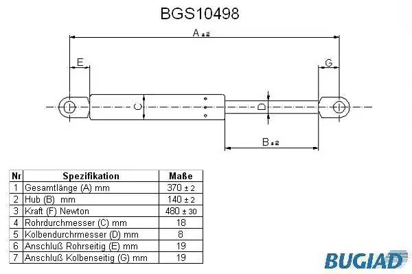 BGS10498 BUGIAD Амортизатор крышки багажника
