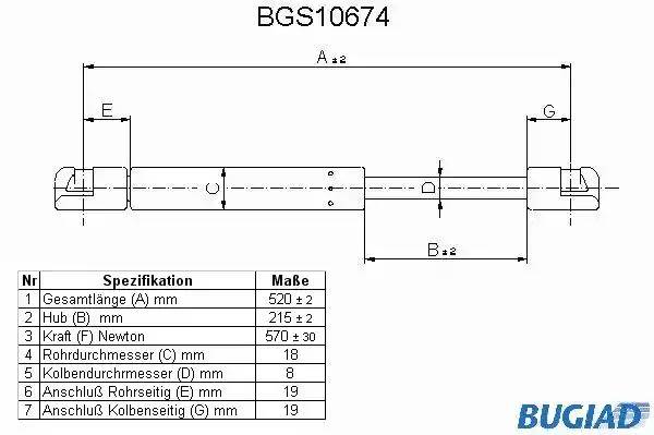 BGS10674 BUGIAD Амортизатор крышки багажника