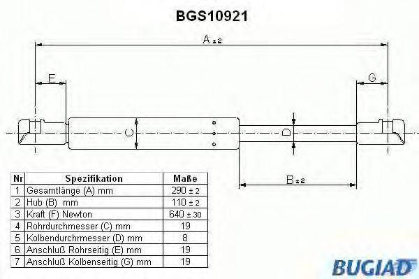 BGS10921 BUGIAD Амортизатор капота