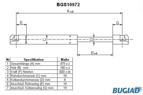 BGS10972 BUGIAD Амортизатор крышки багажника