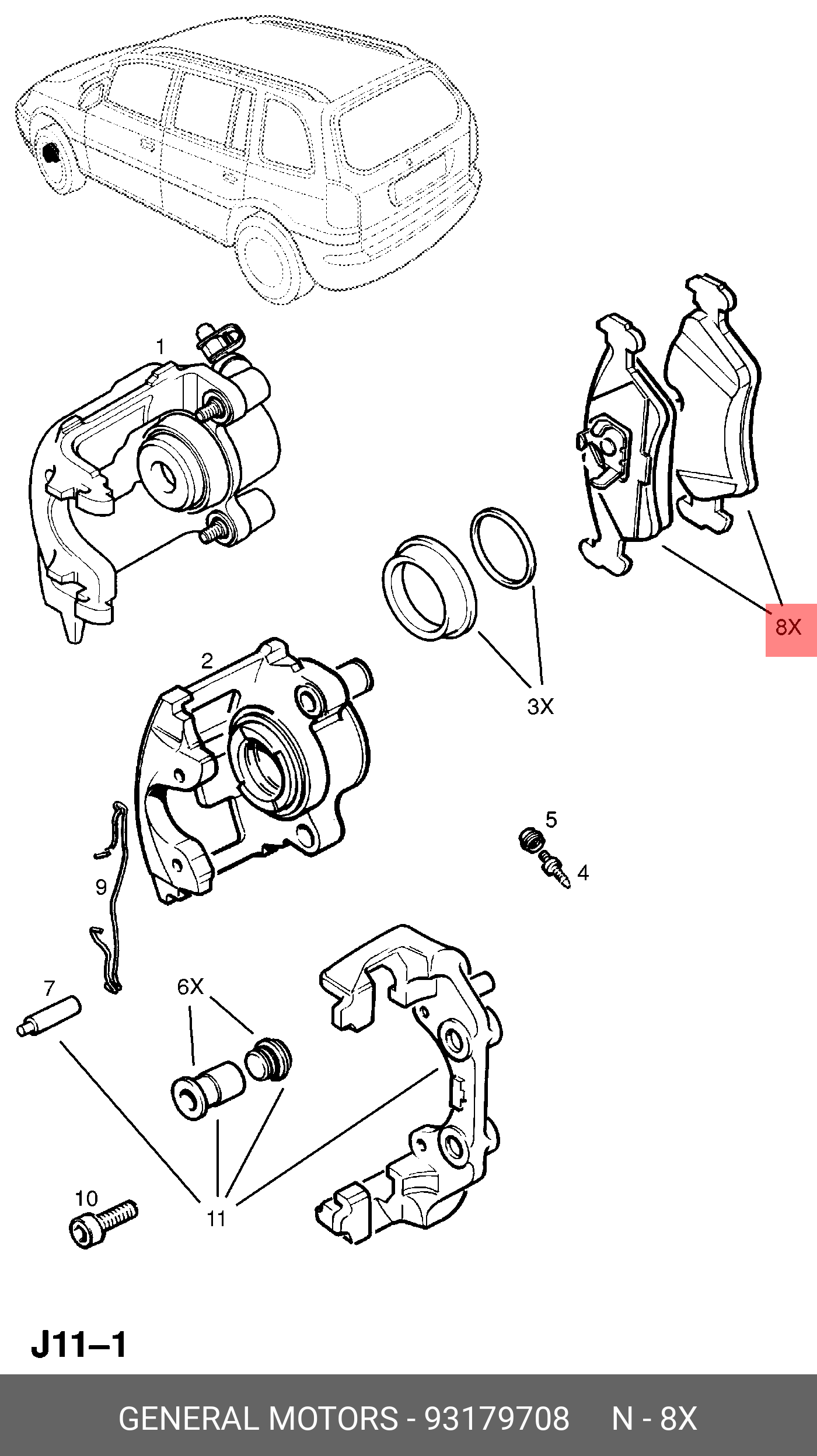 93179708 CADILLAC Колодки тормозные дисковые