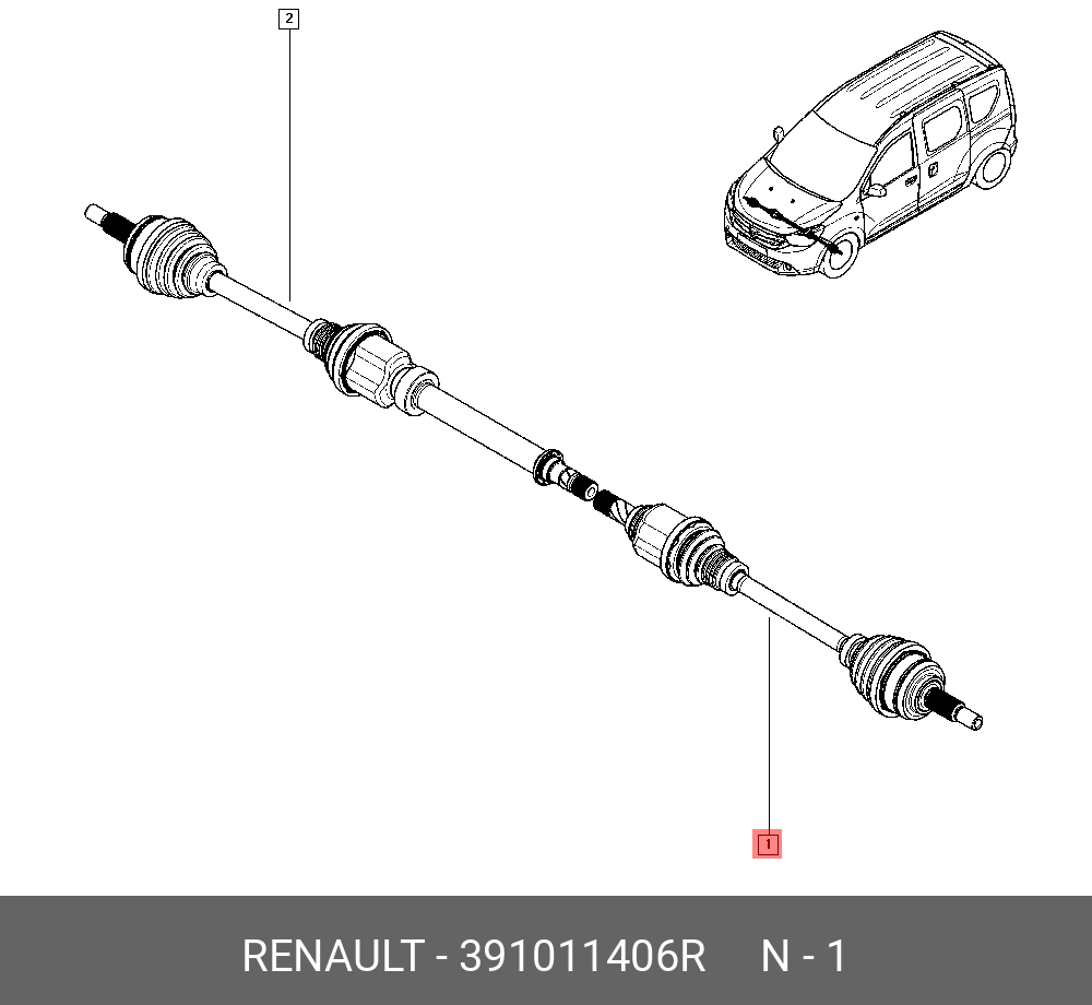 391011406R RENAULT Вал привода колеса в сборе с ШРУСами