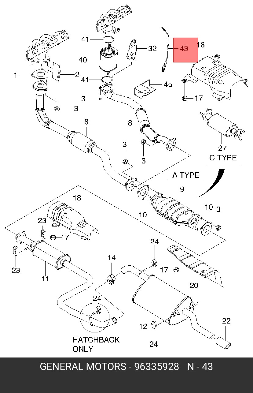 96335928 DAEWOO Датчик кислородный (лямбда-зонд)