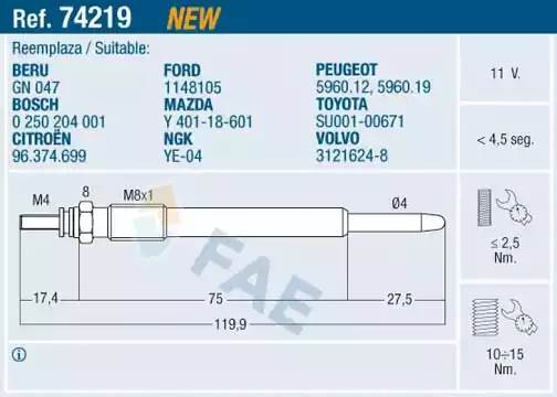 74219 FAE Свеча накаливания