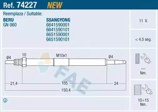 74227 FAE Свеча накаливания