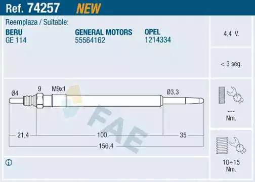 74257 FAE Свеча накаливания