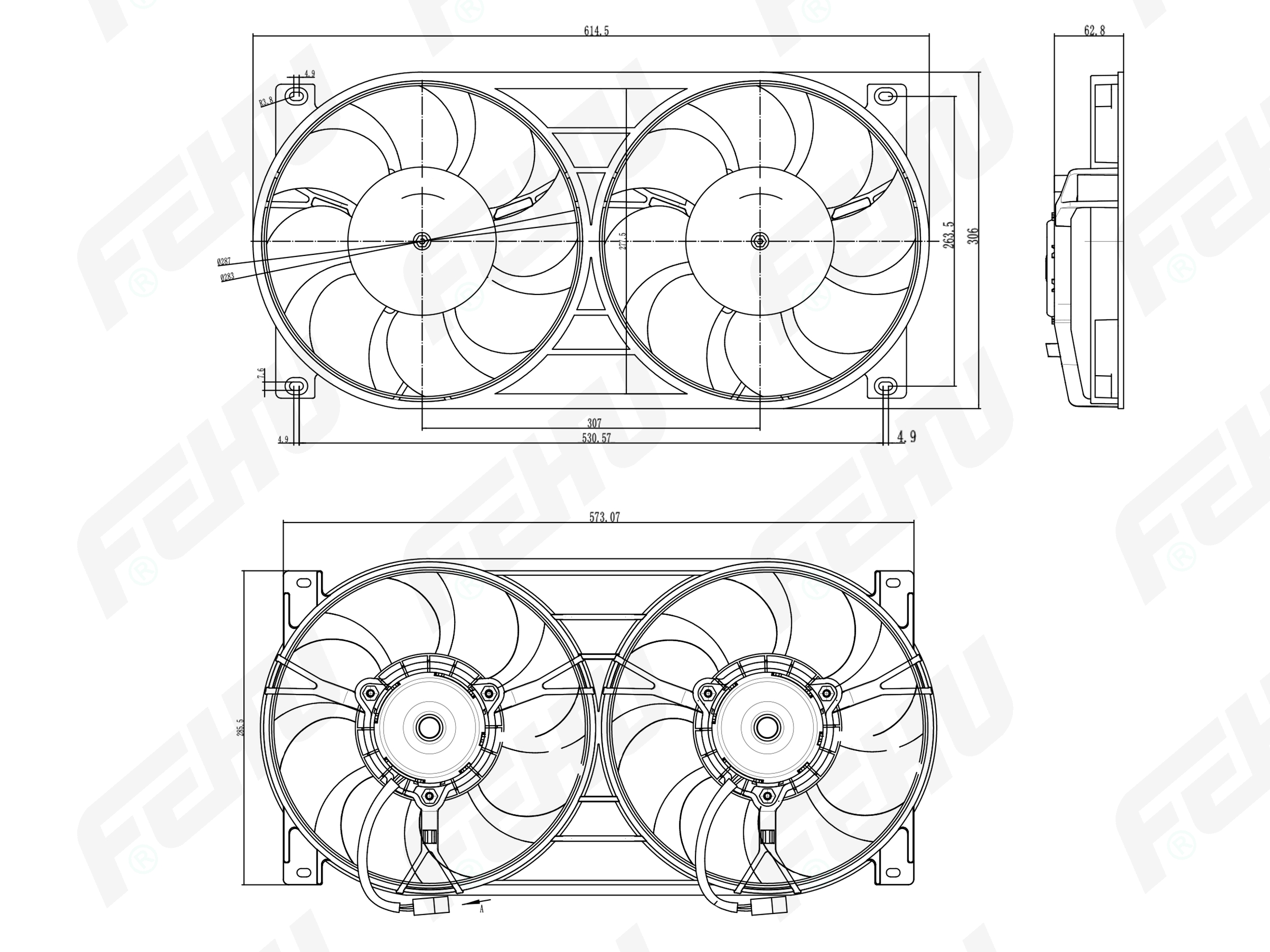 FFC1127H FEHU Электровентилятор охлаждения с Кожухом для (2 вент.) VAZ 21213-214 Niva