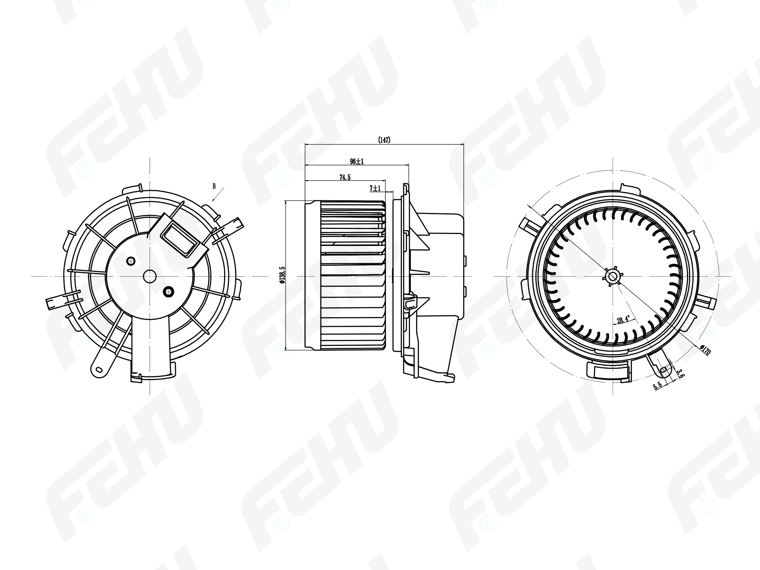 FFH1050 FEHU Электровентилятор отопителя для Fiat Ducato/PSA Boxer/Jumper (06-)