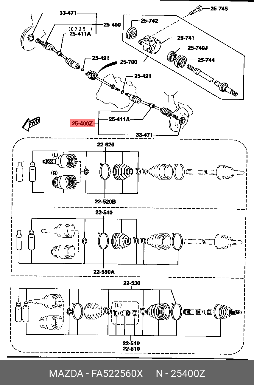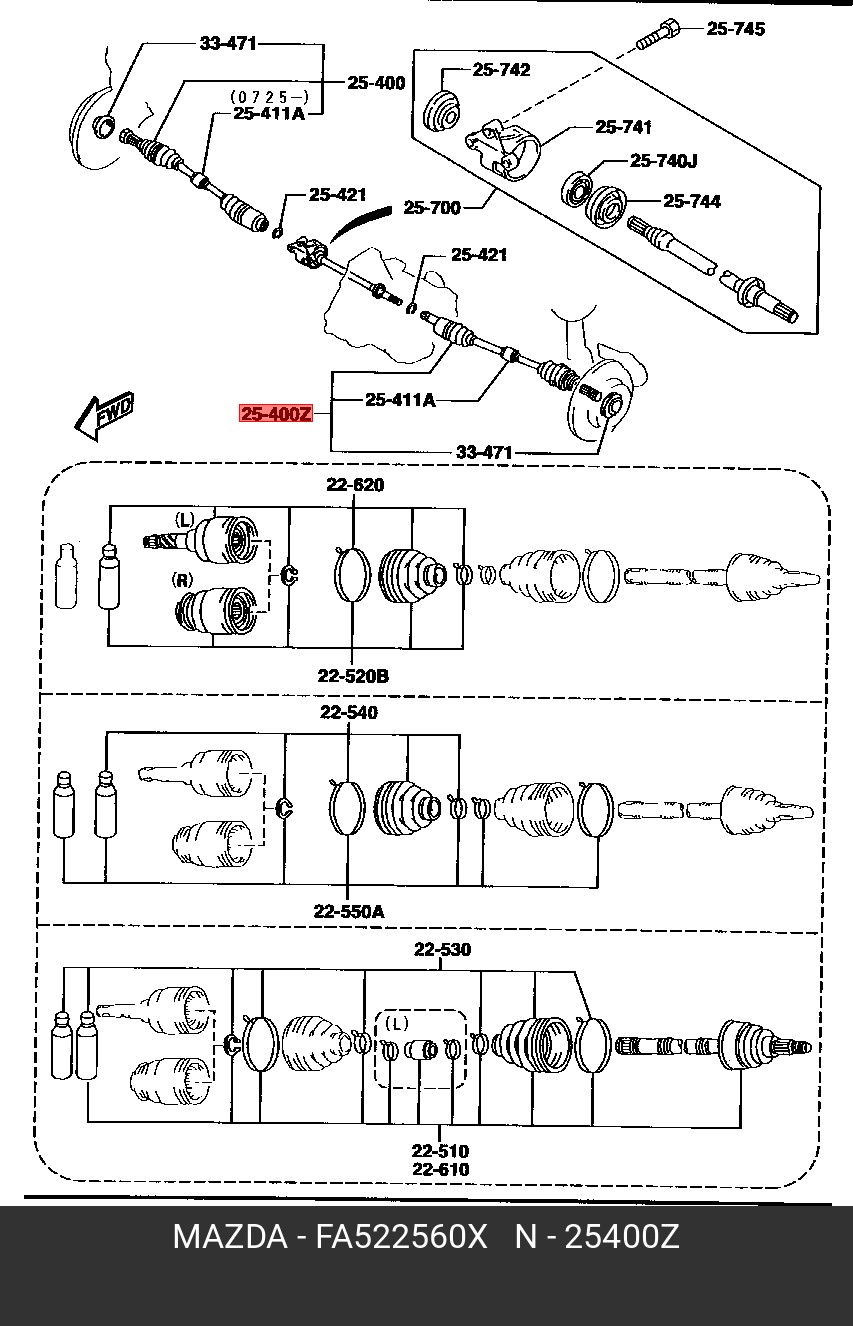 FA522560X MAZDA Вал привода колеса в сборе с ШРУСами