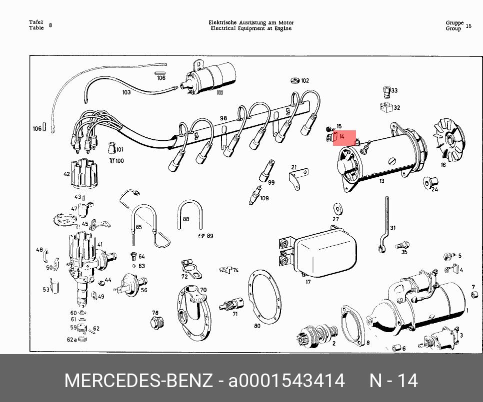 A 000 154 34 14 MERCEDES BENZ Щетка стартера