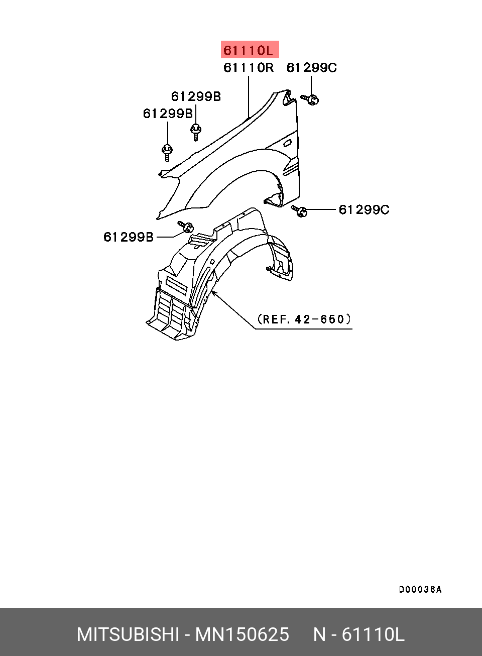 MN150625 MITSUBISHI Накладка крыла
