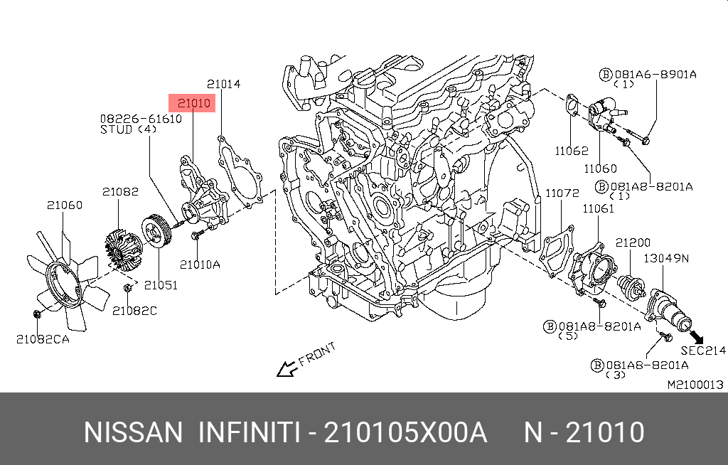 21010-5X00A NISSAN INFINITI Насос - помпа системы охлаждения ДВС