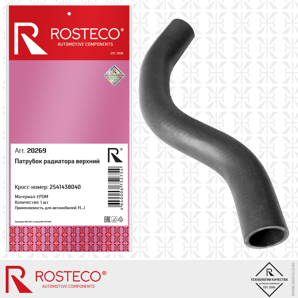 20269 ROSTECO Патрубок радиатора верхний hyundai sonata V magentis 2,0