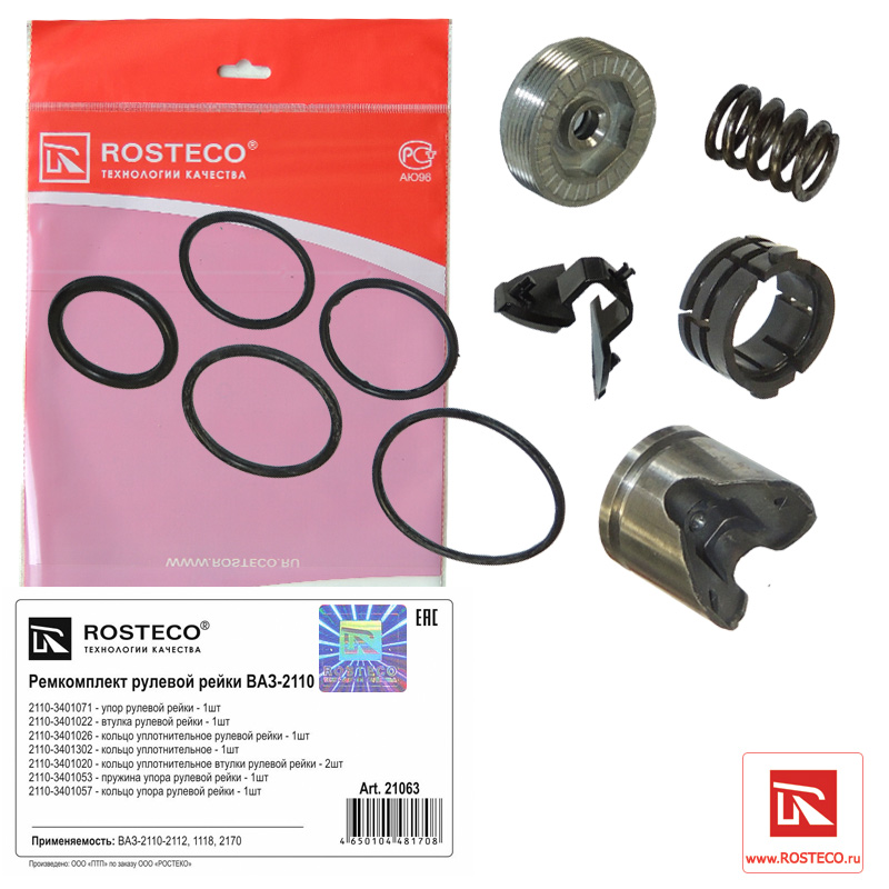 21063 ROSTECO Ремкомплект рулевой рейки ВАЗ 2110 к-т 9 дет.