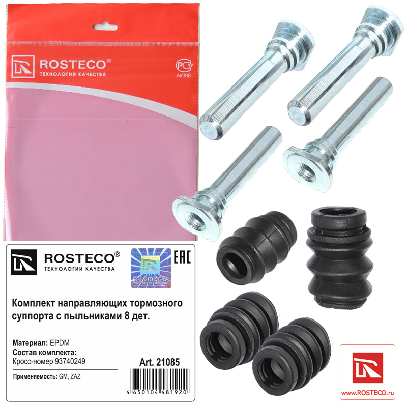 21085 ROSTECO Комплект направляющих тормозного суппорта с пыльниками 8 дет.