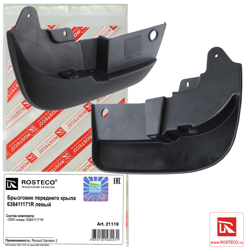 21119 ROSTECO Брызговик переднего крыла Renault Sandero 2014г. ЛЕВЫЙ