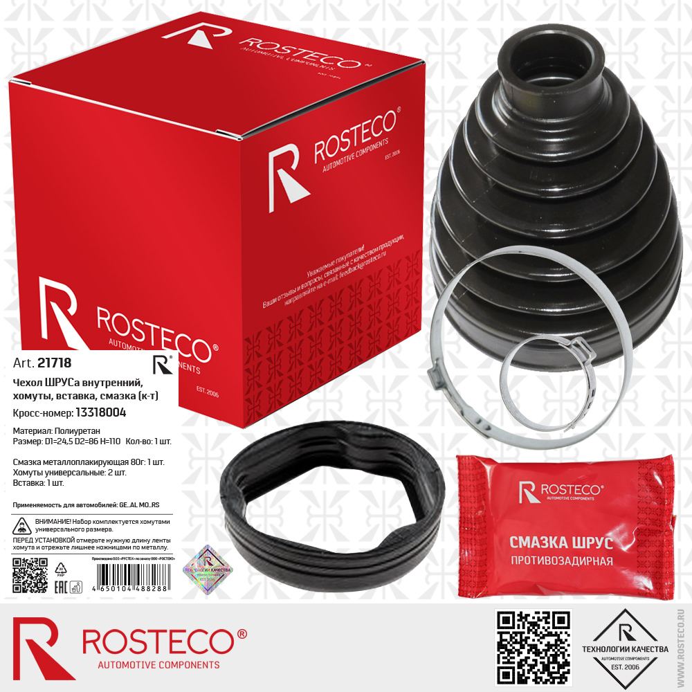 21718 ROSTECO Чехол ШРУСа внутренний+хомуты+смазка полиуретан d=24,5, d=88, H=110