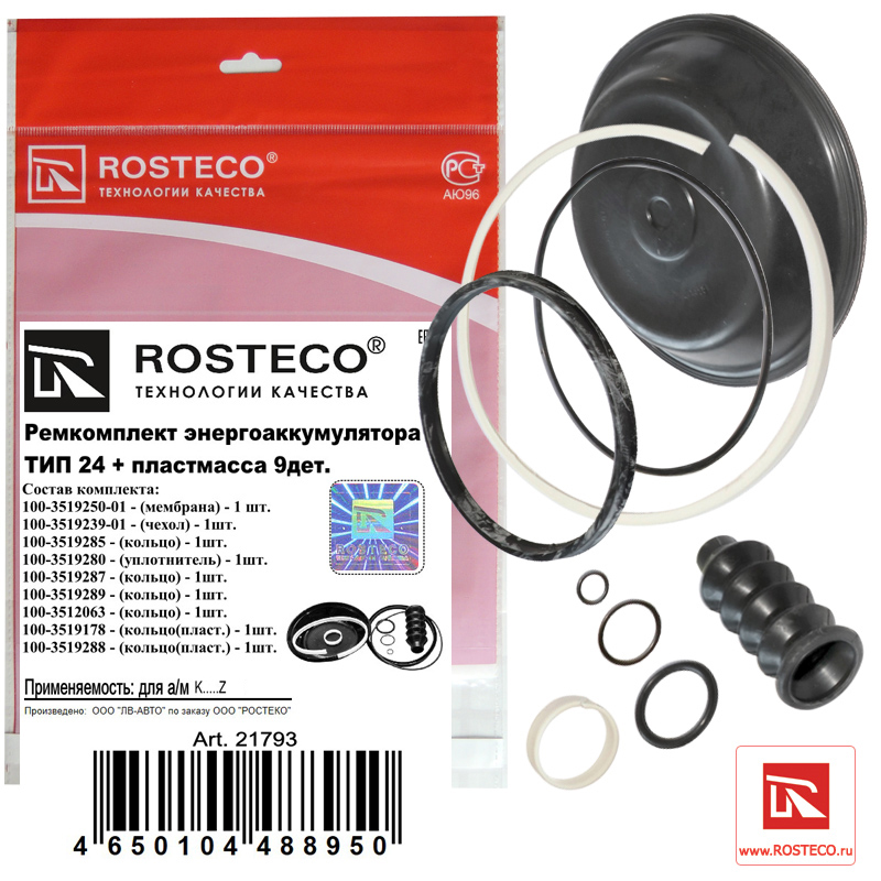 21793 ROSTECO Ремкомплект энергоаккумулятора ТИП 24 РТИ+пластмасса 9дет.