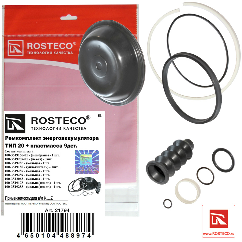 21794 ROSTECO Ремкомплект энергоаккумулятора ТИП 20 РТИ+пластмасса 9дет.