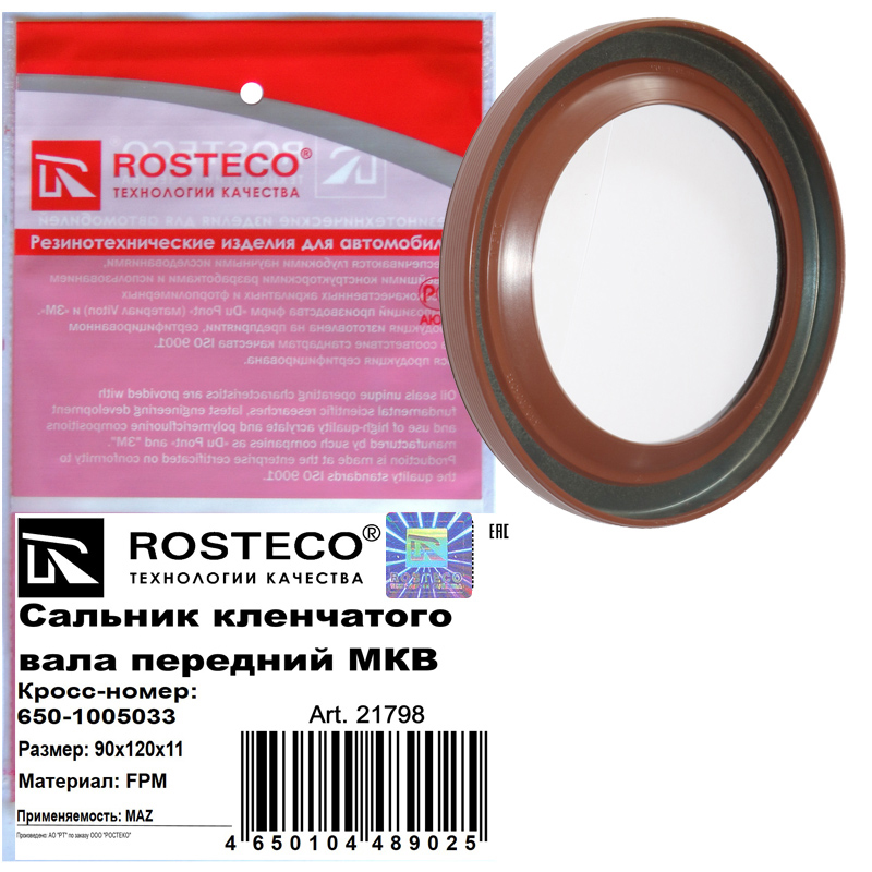 21798 ROSTECO Сальник кленчатого вала передний МКВ 90х120х11 матриал FPM