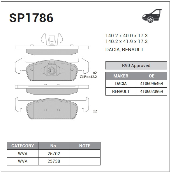SP1786 SANGSIN Колодки торм.дисковые Hi-Q Renault Samsung CLIO IV 12-