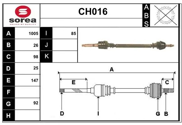 CH016 SERA Вал привода колеса в сборе с ШРУСами