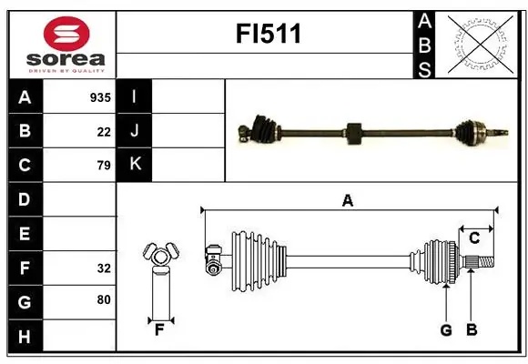 FI511 SERA Вал привода колеса в сборе с ШРУСами