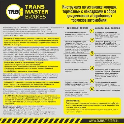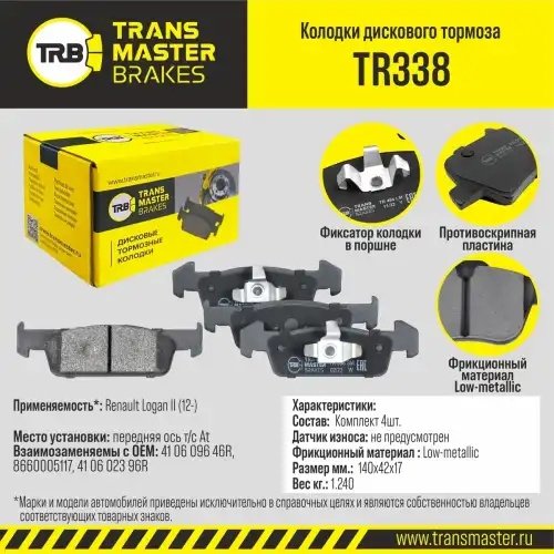 TR338 TRANSMASTER Колодки тормозные дисковые