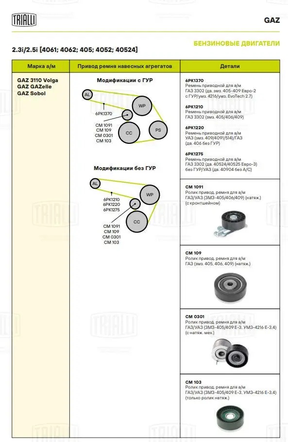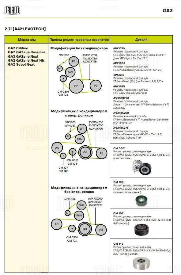 CM 103 TRIALLI Ролик привод. ремня для а/м ГАЗ Евро 3 (только ролик) (CM 103)