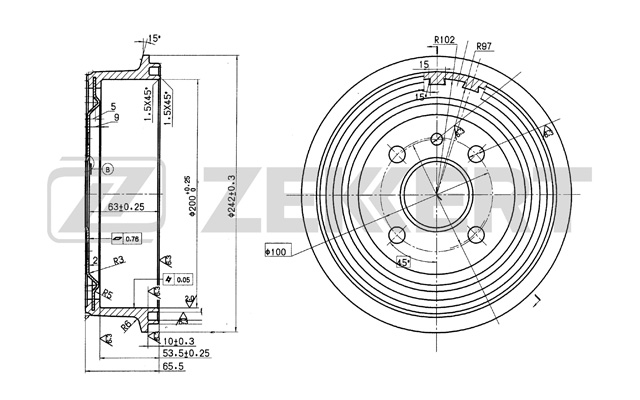 Барабан тормозной задний бес ступицы для автомобиля: DAEWOO LANOS (T100) с ABS; DAEWOO LANOS (T150) с ABS; DAEWOO NEXIA (N100); DAEWOO NEXIA (N150); DAEWOO NUBIRA (J100);
